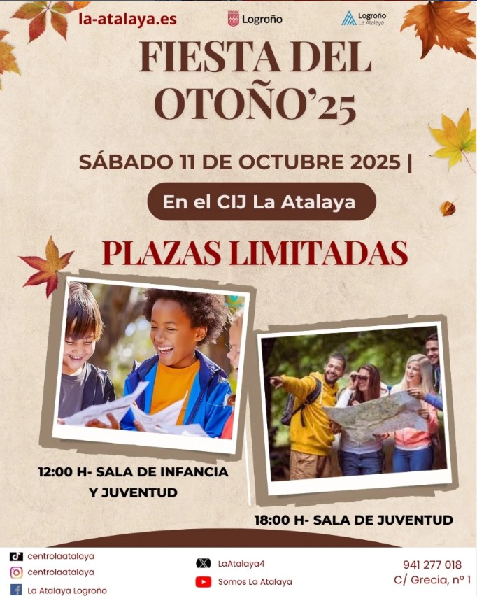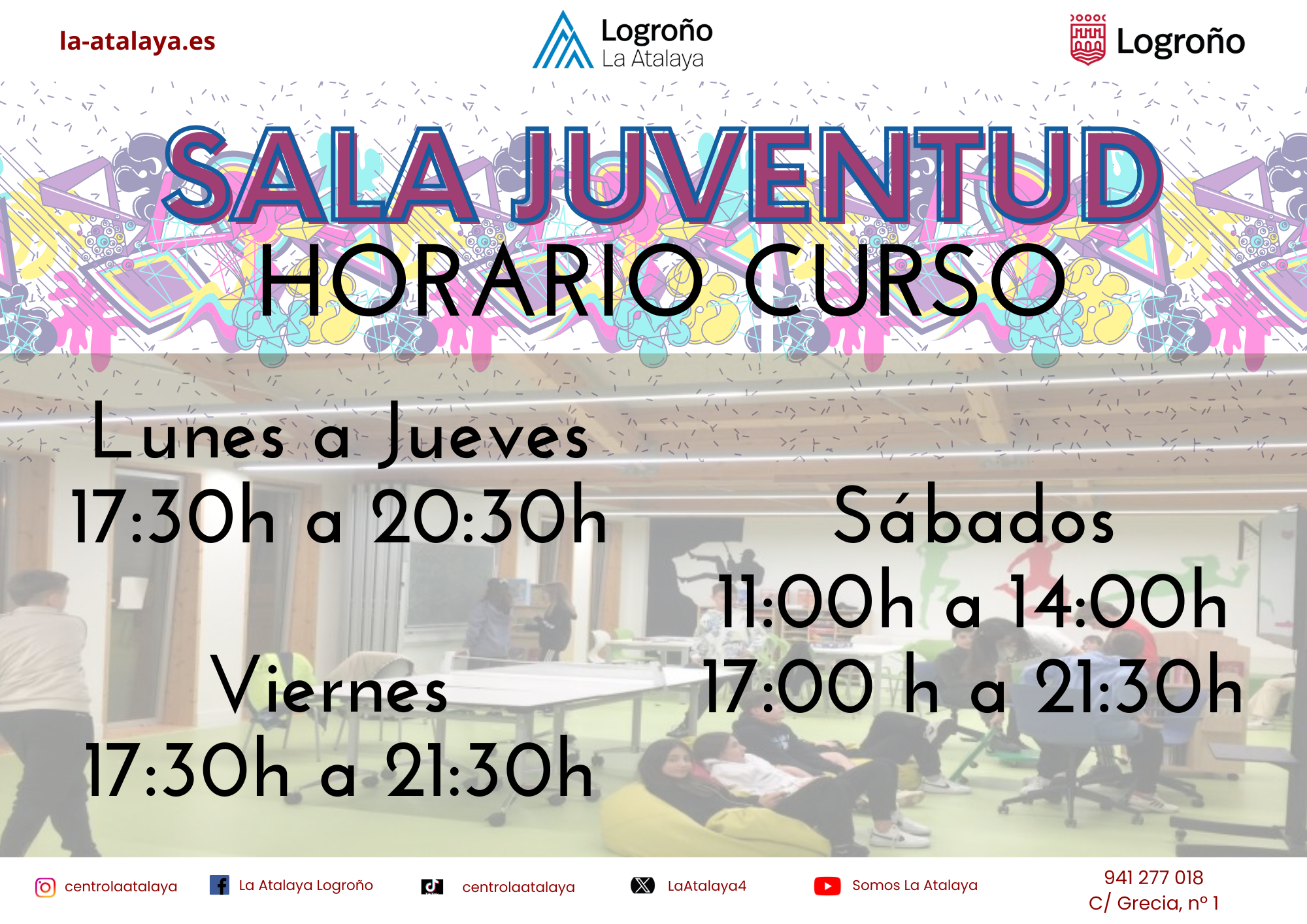 - Lunes a viernes: 9:00 a 13:00 h y 16:00 a 19:30 h en el CIJ La Atalaya.