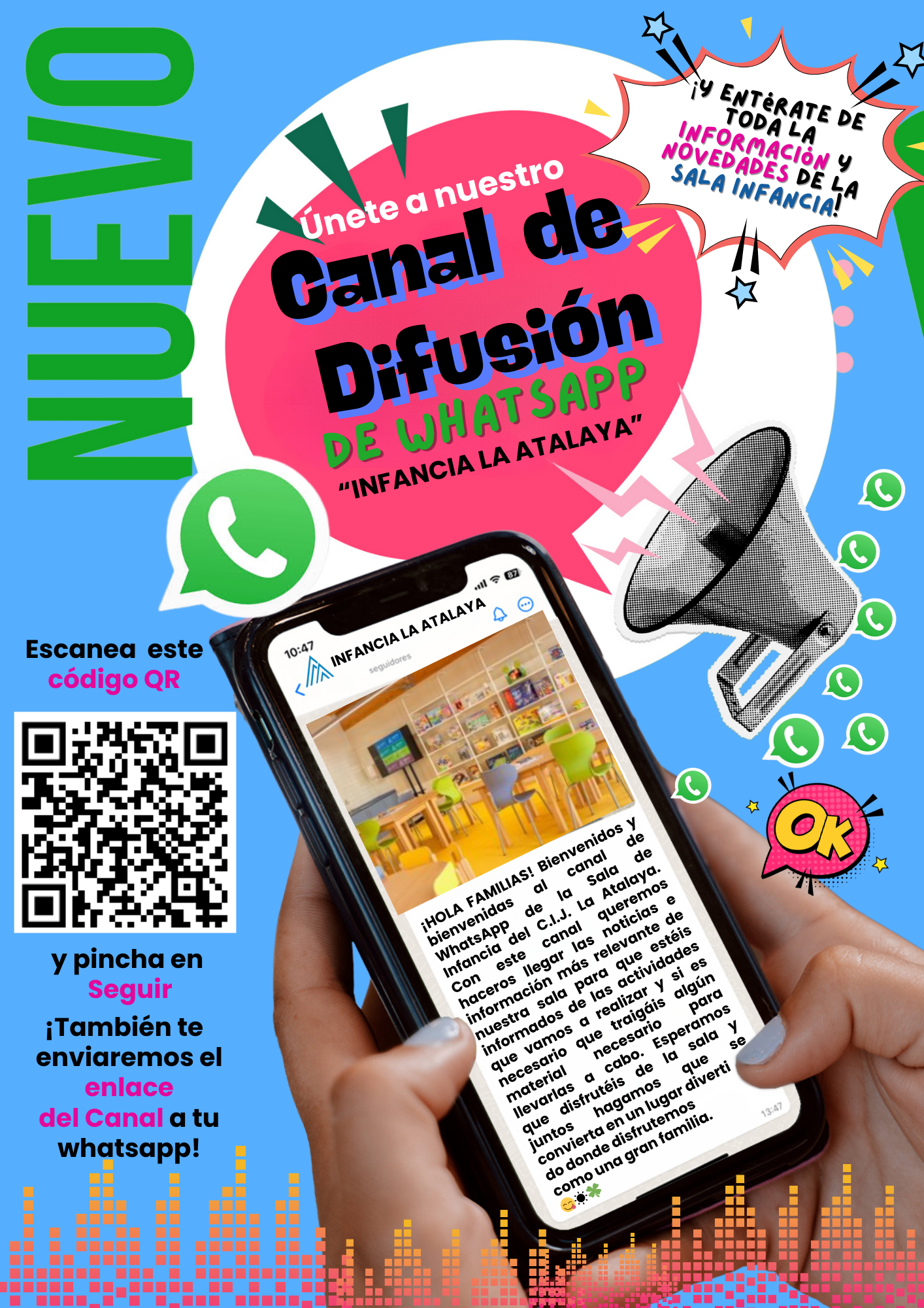 ¡Atención familias! Ya podéis informaros acerca de las Salas de Infancia y de Juventud del CIJ La Atalaya a través de los nuevos canales de información. Podéis escanear el código QR para uniros o bien os enviaremos el enlace del canal por whatsapp. ¡Estamos «on line»!.